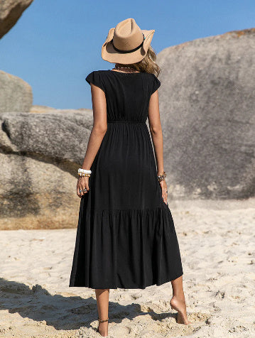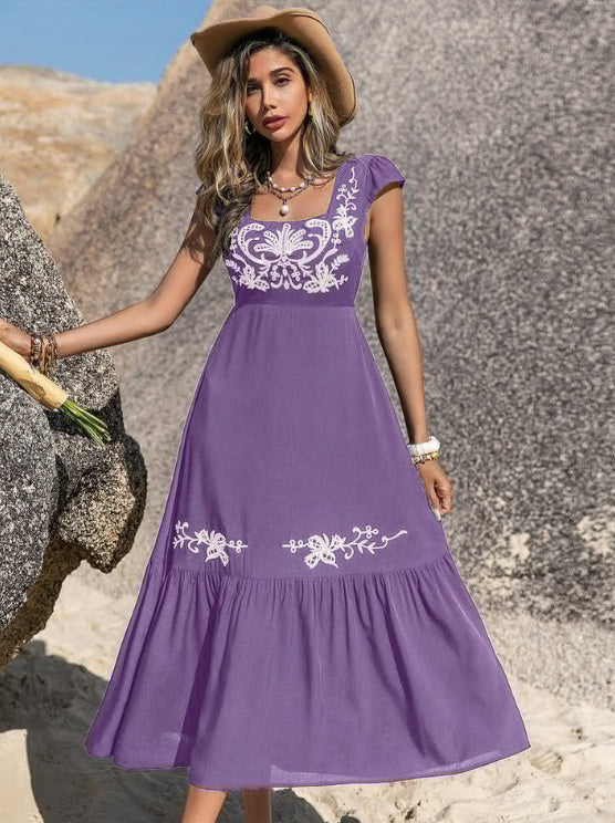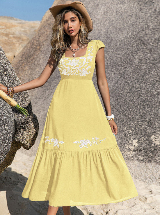 Bohemian Autumn And Winter New Black Embroidery Sleeveless Square Collar Dress
